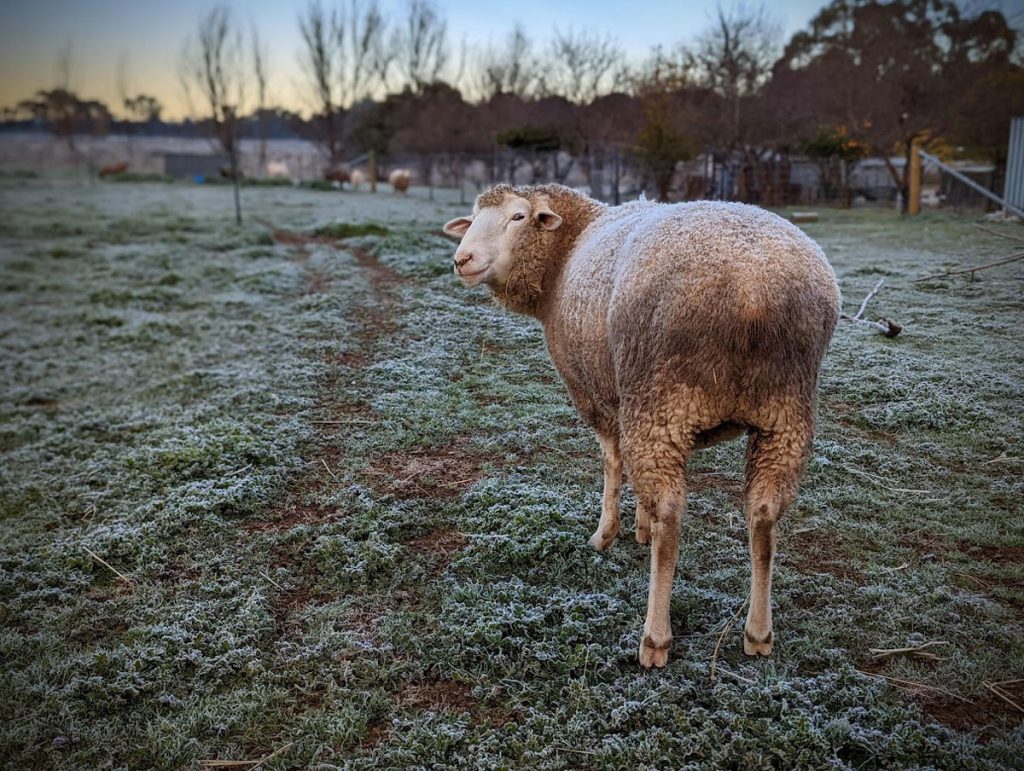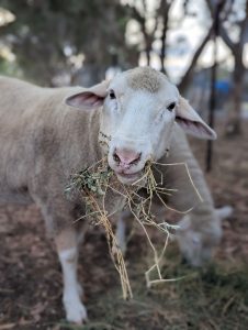 A late night call during the height of lockdowns saw us scrambling for permits and making a midnight run over the border to bring boisterous Benny into care. After being raised as an only sheep with his doggo pals as companions, the ordeal of change and transport was extremely stressful for our new friend. Benny went through intense separation anxiety and confusion over the first days of his new life, he didn’t know who we were or if he could trust us. He was terrified of other Sheep and the human had to roll out his swag and sleep in Benny’s pen for his first night at the sanctuary. With time, love, patience and extra yummy treats we were able to win his affections in the end.