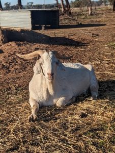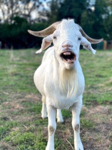 Gandalf was rescued from a rural pound as an intact Buck and was likely used for breeding and no longer wanted. Gandalf found himself homeless and very smelly so after being de-sexed, he found his way to the Sanctuary via Strong Hearts Farm Sanctuary and immediately made himself right at home. You will often find him screaming down the paddock demanding snacks, guarding his favourite shelter or sunbaking. He is most definitely the boss of the Goat herd and takes great delight in that fact. Gandalf also likes to razz the humans up when we enter the paddock and show us just what he can do with his impressive horns, when he approaches we never know if we should expect a head butt or his beautiful face presented for cheek scratches