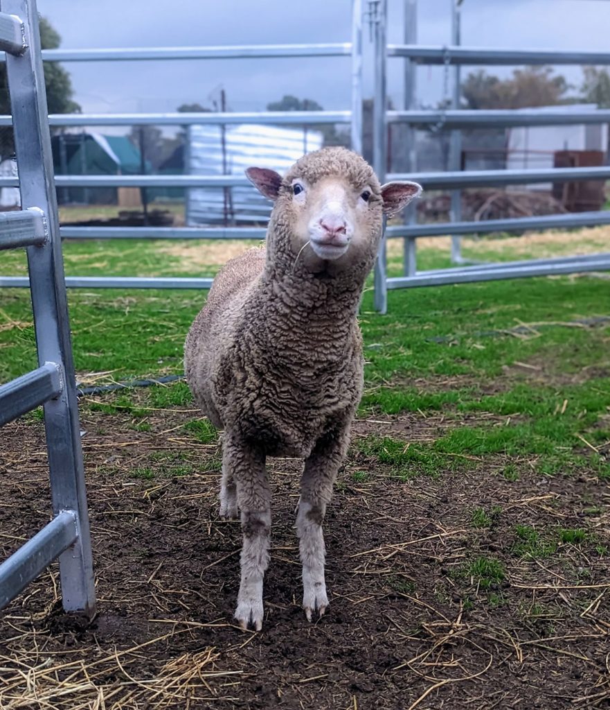 We will often find ourselves one Sheep short and start to worry, a quick search of the paddock often finds Happy alone and eating some left over Lucerne that the flock has missed, she still holds a very independent spirit.