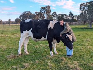 Ticking off her morning chores as per the usual routine, the dairy farm hand responsible for the calf shed had only just knelt down when a sweet little boy (spoiler, it’s Moose), walked up and gently headbutted her. As she looked up to see who had the audacity, her eyes met his and he instantly wiggled his way into her heart right then and there.