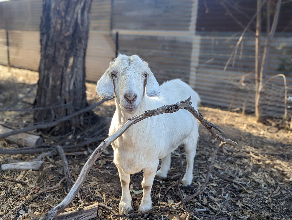 Nanna doesn’t have a tooth left in her mouth, a little arthritis has set in and she is shy, but this sweet old lady has a lot of life left in her yet. We look forward to providing her a loving home as part of the Sheaar Existence Goat herd for all her days