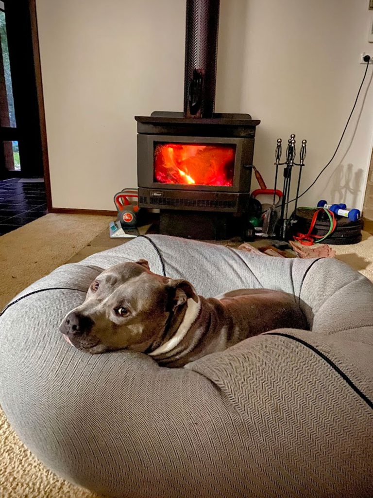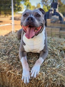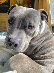 These days he is a couch potato who takes up our whole bed every night. He loves going for walks and drives followed by long naps and a snack. He is a mega drool monster and we definitely aren’t allowed to eat anything without sharing. Pilot is entering his senior years but that hasn’t stopped his Am Staff cheekiness from keeping us on our toes and filling up our hearts. He has the most beautiful big Staffy smile and a chonky body that begs to be snuggled.